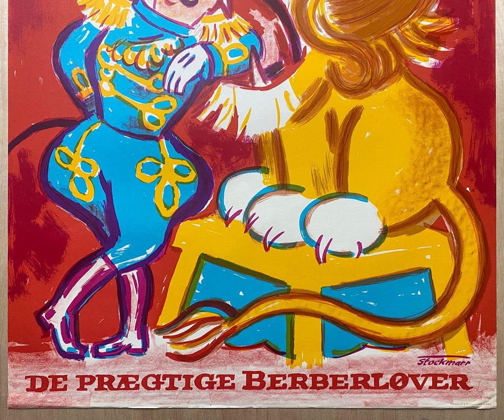 Stockmarr’s name is signed in print in the lower right corner of the image area and the lower margin indicates the printer as Permild & Rosengreen KBH. This vintage original poster is free of tape or pinholes and shows light to moderate handling wear with some bumping to the edges in places and a bit of creasing to the tip of the lower right corner. Overall condition is very good.