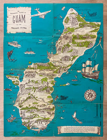 c.1950s Guam and the Marianas Islands Pictorial Map Pacific Ocean