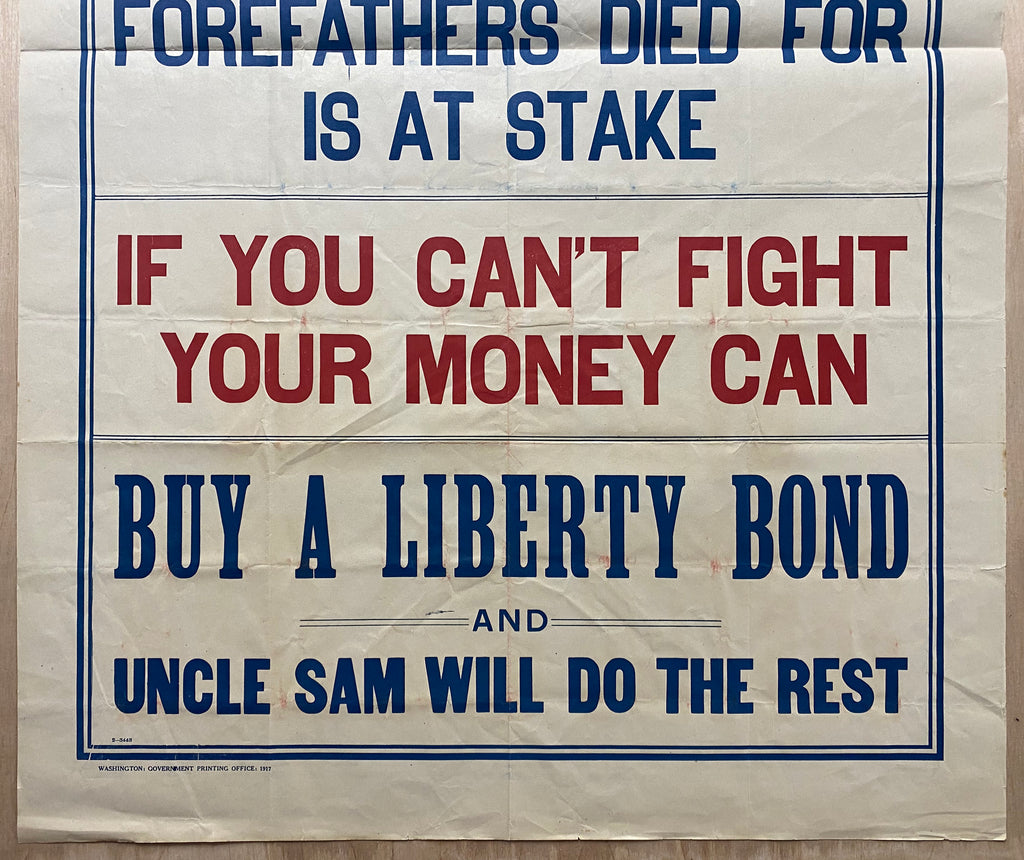 MAKE YOUR DOLLARS END THE WAR – YOUR LIBERTY YOUR FOREFATHERS DIED FOR IS AT STAKE – IF YOU CAN’T FIGHT YOUR MONEY CAN – BUY A LIBERTY BOND AND UNCLE SAM WILL DO THE REST
