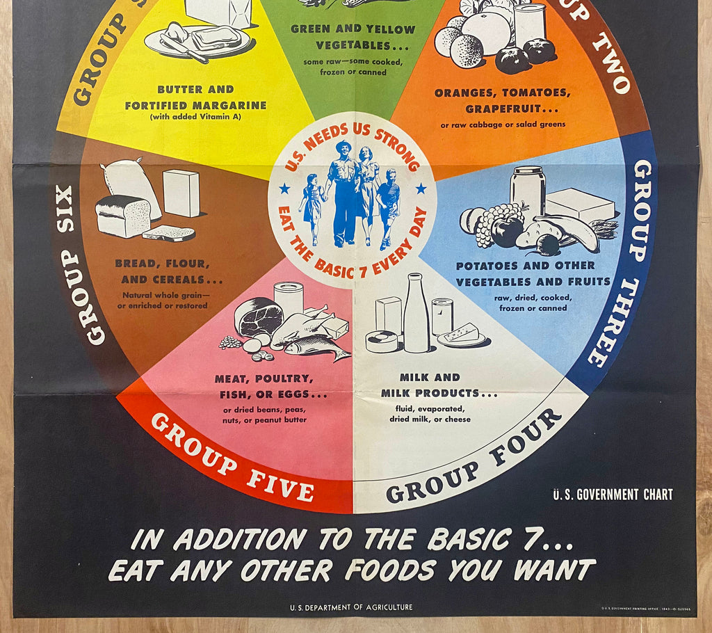 1943 For Health Eat 7 Basic Food Groups Every Day USDA WWII