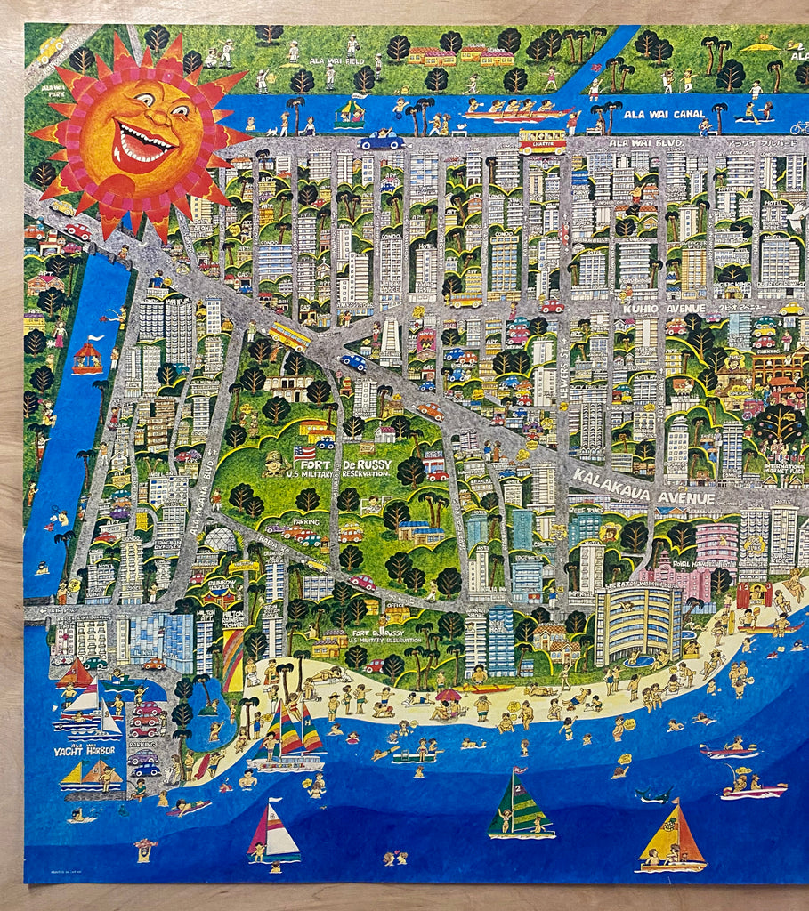 1975 Waikiki Play Map Pictorial Map Hawaii Sun Planning