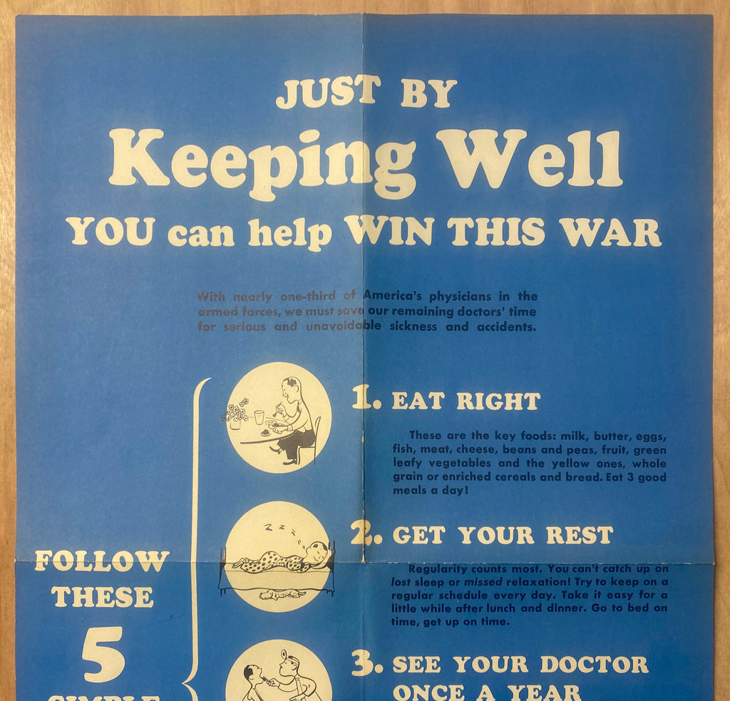 c.1942 Just By Keeping Well You Help Win This War WWIl Public Health Home Front