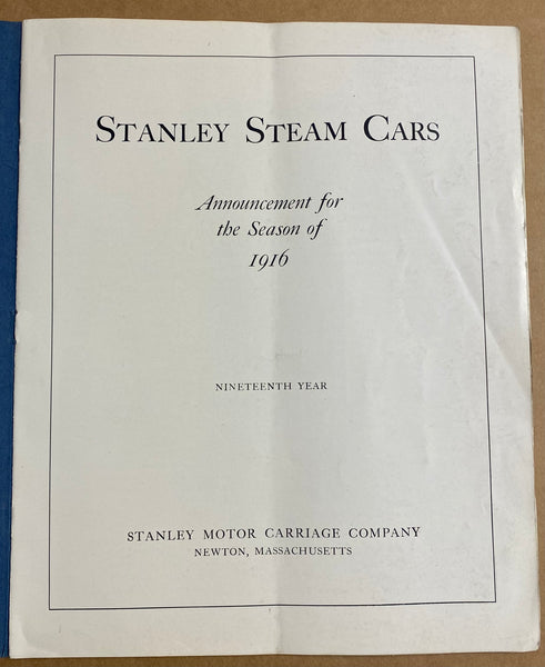 STANLEY STEAM CARS Announcement for the Season of 1916 Nineteenth Year – Stanley Motor Carriage Company, Newton, Massachusetts