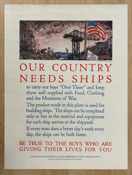 1917 Our Country Needs Ships United States Shipping Board Herbert Meyer WWI