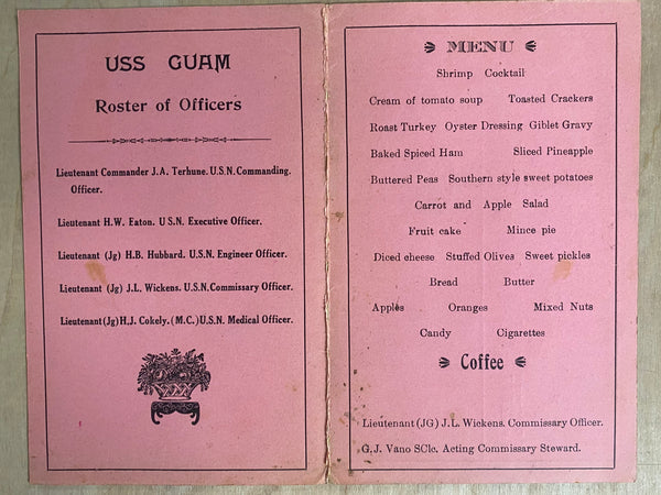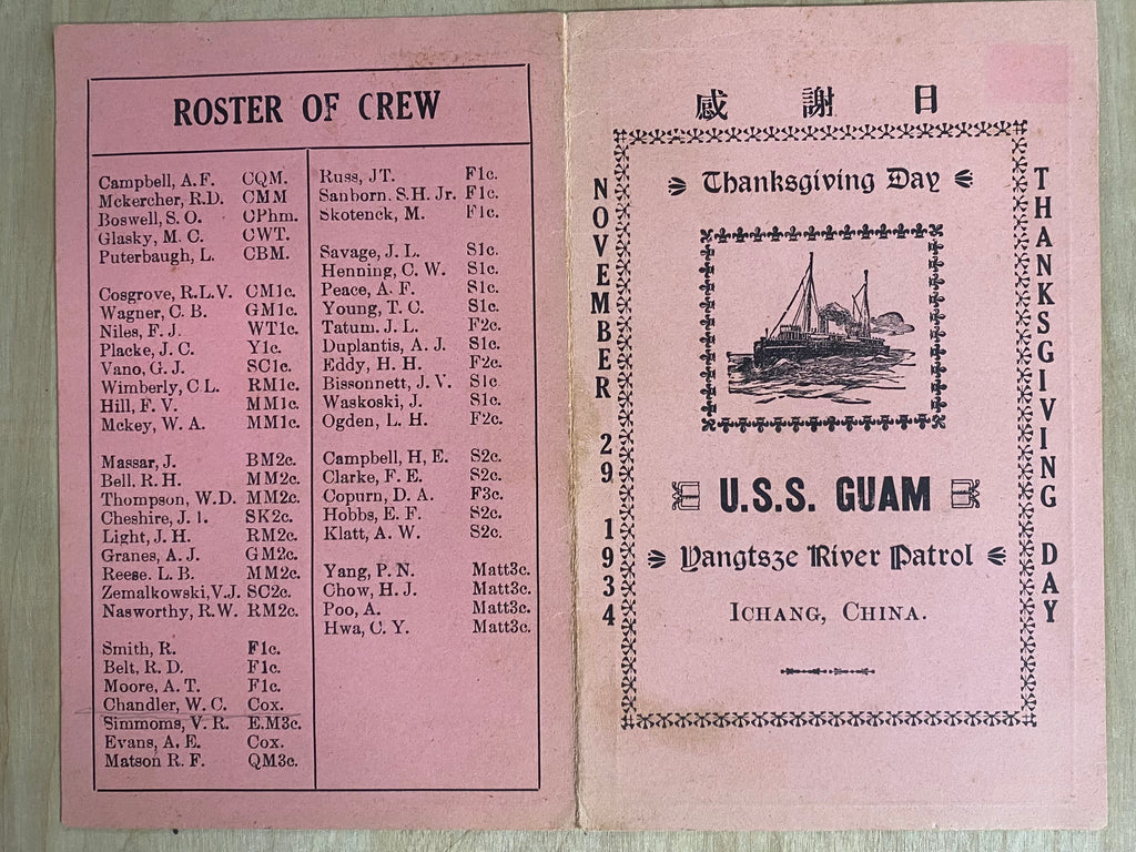 1932-1937 USS Guam P-3 US Navy Yangtze River Patrol Gunboat Menu Lot China