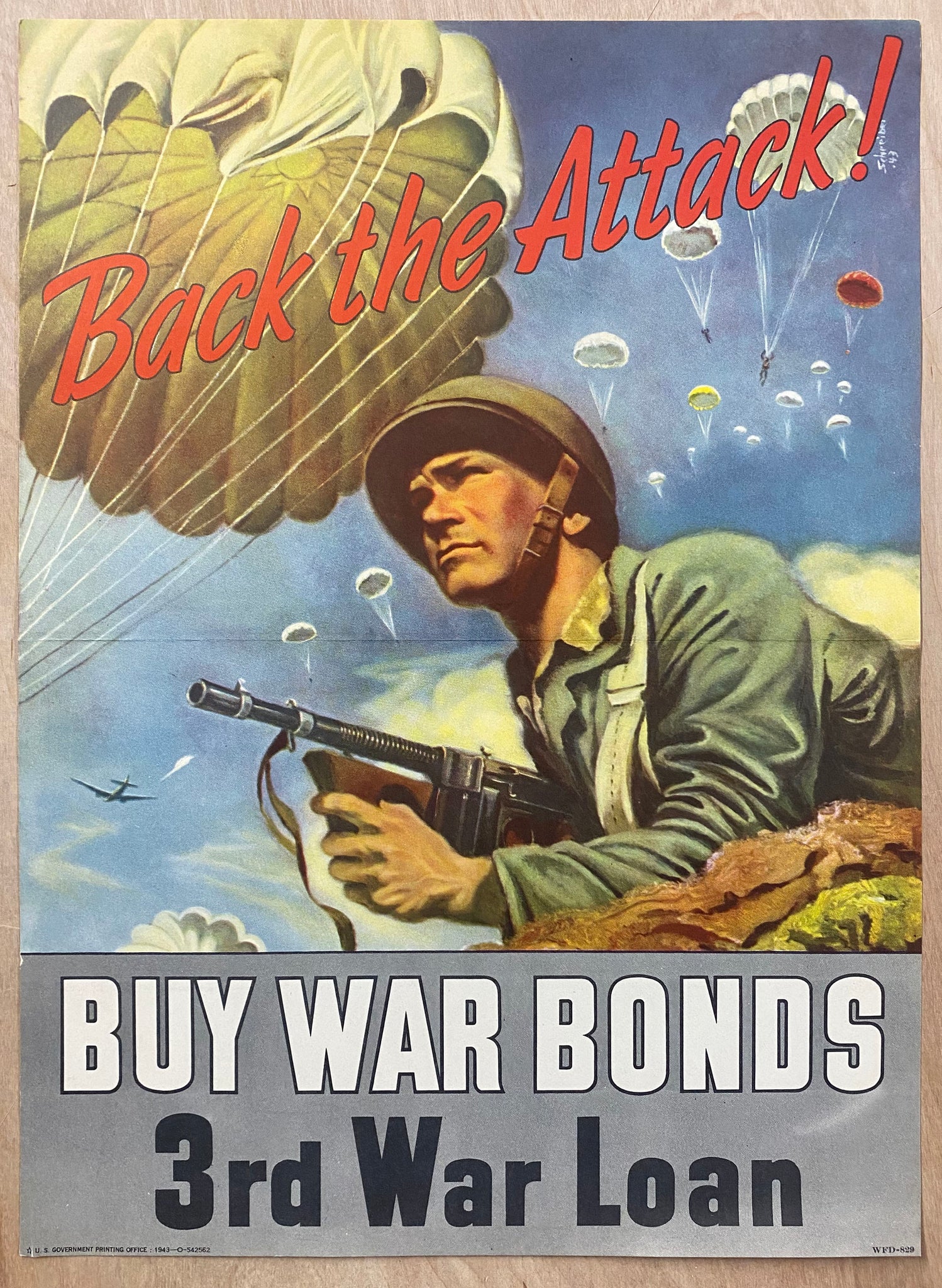 1943 Back The Attack! Buy War Bonds 3rd War Loan Georges Schreiber WWII Small Size